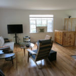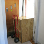 Like a fool I was determined to get the cabinet back into the house by myself, and it did not go well – after taking off door and weatherstripping again, there was still only about 1/16″ clearance between the sides of the cabinet and the door jamb, and I ended up scratching up my new finish in a few places. But those were easily repaired.