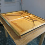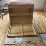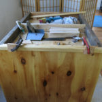 And the fit was not perfect – the original cabinetmaker hadn’t cut the sides perfectly straight, and I hadn’t thought to plane them earlier. Ultimately, searching online, I found adhesive-backed felt tape to line the interface between top, sides, and front. This would help keep dust out. I ordered it the week before I left for Indiana, and it was waiting for me 6 weeks later when I got back from the hospital.