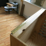 So I order a new set of slides for the bottom drawer, and waited another week for it to arrive. And meanwhile, I finally found that missing chip from the side of the cabinet. It was in the bottom of one of the drawers. If only I’d found it months ago, I would’ve saved a couple days of work fabricating a new patch, and the cabinet would’ve ended up looking better. So it goes.