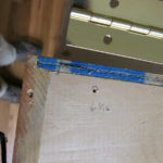 Once I’d decided to hinge the top, I worried for weeks about how to align the hinge. Both the cabinet and the top were really heavy pieces, and the hinge would need to be attached with the top open, in such a manner that the top would be aligned with the cabinet when closed.