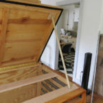 I also realized that the cheap piano hinge from our local Ace is not really sturdy enough for the weight of this top. But it took me so long to install it, I’ll leave it as is for now, letting the next owner worry about that.