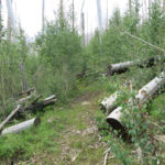 My goal was to get as far along the crest as possible, but what had drawn me back here now was curiosity. My previous visit, almost two years ago, had been a few weeks after an extreme wind event had toppled thousands of fire-killed snags across the trail. In a masochistic determination not to let that stop me, I’d fought my way over, under, and around a couple thousand fallen logs, and it was such a miserable experience I swore not to return until the trail had been cleared.
