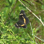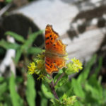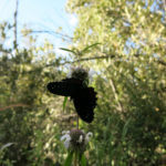 From the pine park, you’re descending a north slope in late afternoon, so you’re mostly in shade, with long shadows from the crest cutting across the slopes ahead, making wonderful patterns of light and dark. As usual, I was looking forward to burrito and beer in the cafe, but still lingered as much as time allowed, to admire flowers and butterflies.