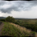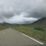 On the drive north, the sky was clear to the west, but there were broad, high clouds over the mountains on my right. And I was excited to get a little rain on the windshield as I headed toward them, but it didn’t last.