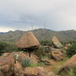 But again, my compulsive nature won out. At the high point, there wasn’t even a view to reward me, since the peaks of the range were still hidden under clouds, so I continued down to the highway saddle – the terminus of the trail, which most hikers use as a starting point. It was empty – not surprising in this weather. I’d used up so much time already that I realized I’d get back to the vehicle near sunset, facing a 2-hour drive back home in the dark. So I decided to drive to Safford and stay there in a motel – I thought I might have enough points for a free night. The idea picked up my spirits – Safford is a strange place and could add to the day’s adventure.