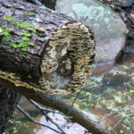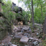 Then, less than a mile into the hike, the trail began climbing and led around a hill toward a narrow gully – the only gully crossing on this hike – and the freight train sound came back. It was coming from the gully! What the hell was I going to find?