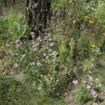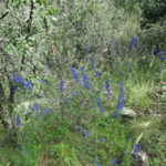 As usual at this time of year, the annuals on the slope were at their peak of flowering, but hard to photograph. Nearing the intact forest after another half mile of traversing, I was amazed to find the hawk again joining me, briefly. I guess it was just curiosity!