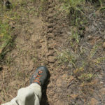 I was really feeling much better as I strode down the mountain, smiling and spreading my arms to stretch my shoulders. I hadn’t seen any recent footprints on the CDT, but when I eventually reached the creek trail I began to notice occasional mountain bike tread, and when I finally reached the upper part of the dirt road in the canyon bottom, I realized two people had ridden their mountain bikes here while I was hiking. Then at the rocky midpoint of the road I found footprints of another couple who’d walked up today. And just past the eroded, undriveable part there were off-road-vehicle tracks and horse poop, also from today. Apparently there’d been a whole crowd down here on every conceivable conveyance while I was up higher hiking. Nice to be able to get away from the riffraff!