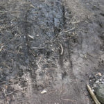 I was shocked to find this littly gully, which had never had water in it before, turned into a churning torrent of muddy water, 8-10 feet wide at its narrowest. Then I began to visualize the landscape above, and I realized that the watershed for this tiny gully led 3 miles down from the crest, which was over 3,000′ above. So it was actually able to collect a decent amount of runoff and ultimately funnel it through here.