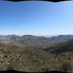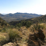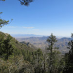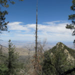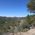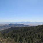 But occasional views east from the deforested slopes continued to be rewarding. This is a narrow north-south range, and the eastern slope is so steep that the nearest outlying peaks are over a thousand feet lower, giving you a clear view over 40 miles of rumpled landscape to the low ranges across the Rio Grande.