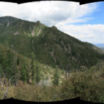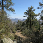 Fortunately the flies disappeared beyond the foothills – hopefully they were localized around the cattle. But it seemed to take much longer and require much more effort than expected to reach the midway point, a saddle in the ridge that stays to your right during the climb. Since the entire trail, ending at the crest highway, is only a little over 6 miles – shorter than my usual Sunday hikes – my plan had been to add a mile or two on a side trail. But I was so fatigued by the halfway climb I wondered if I’d even be able to finish this trail.