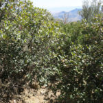 Flies were bad and I had to pull on my head net shortly after starting. Small flowers brightened the trail, and the Emory oak leaves were turning. We think of deciduous trees as changing color and losing their leaves in fall, but the Emory oak does this in our windy season of March and April.