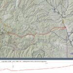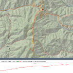 I reached the trailhead 9-1/2 hours after I started. I’d made a lot of brief stops, but it had to have been a long hike. When I plotted and profiled it back home on a topo map, I found it had totalled 17.3 miles, with 2,932′ of accumulated elevation gain. Coincidentally, the forest road where I turned around is only a quarter mile from the point I reached last year on a 19-mile hike from much closer to town. So I was only a quarter mile from connecting the two hikes.