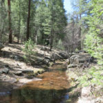 The last couple of miles were especially hard as I sensed the crest getting near. The canyon narrowed and seemed shallower. I was now in the upper elevation mixed conifer forest with firs and tall old-growth Gambel oaks. My hip was beginning to complain, but surely I was nearing the top?