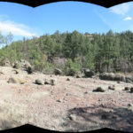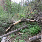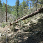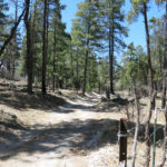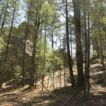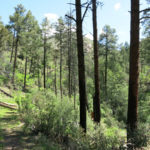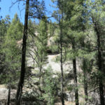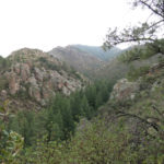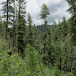 Entering the shadowy old-growth fir forest near the crest I got a second wind. The second milestone on this trail is a tiny saddle where it crosses to the north side of the crest and enters dense, cool fir forest – the third completely different habitat adding to the appeal. It’s a 3,200′ climb to that saddle, and while traversing upward on that north slope you occasionally get glimpses through the firs of the vast Gila River Valley 5,000′ below to the north.