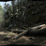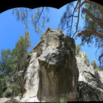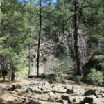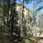 I was now in a stretch of canyon lined with huge boulders, cliffs, and impressive rock outcrops, but immersed in dense forest, I could only catch glimpses through the tall ponderosas, oaks, and alders.