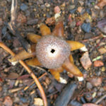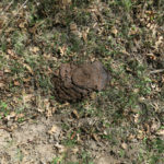 But I did begin to notice human footprints, and was soon able to pick out the hiking trail from the animal trails. Then, when the trail dipped back into the canyon bottom, I found clearings of disturbed ground covered with piles of horseshit. Horses are not generally allowed to range free, so I figured this must be a rare enclave of feral horses.