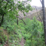 I was now behind schedule, my hip was hurting, and this overgrown burn scar offered little in the way of views and was no place to hang out. But I knew I’d achieved a serious hike and was proud of myself. Knowing the descent would be even harder on my hip, I took a pain pill and began the long slog back, most of which would mercifully be downhill.