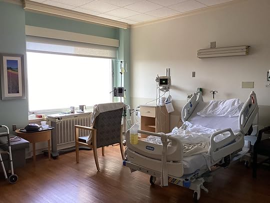 I told the orderly that wouldn’t work, and was wheeled back into the hallway, where the “charge nurse” threw a fit, saying no one had told her I needed a private room. So my bed was parked in the hall for another half hour – after which I was wheeled into a huge, luxurious private room with a wall of windows. After 2 weeks, I had returned to the same unit I’d started out in, right after leaving the Emergency Department.
