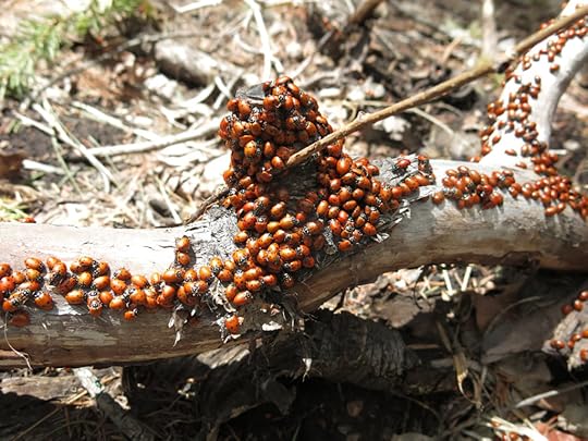 I was so motivated that I walked too fast up the steep grades of the first three miles, and wore myself out. As expected, I ran into foot-deep snow involving precarious traverses in stretches of the hanging canyon. There were also deep patches on the peak. But the ladybugs were already out en masse.