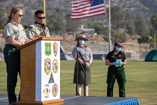 The road through that area was closed, and my condition, and the surrounding hills, made it hard to see what was going on, but I followed updates on Inciweb, the government wildfire information website. I assumed the fire would burn uphill to the ridgeline, and I was saddened to think that I’d lose yet another forest hike. But as the online fire maps were updated from day to day, I saw fire behavior that was completely unexpected. The fire climbed straight north up to the ridge, then dropped straight north down the back side without running laterally. Then from there, it turned right and ran laterally to the east, while windblown sparks raced above it and landed at the east end of the ridge, where spot fires merged and became a new center.
