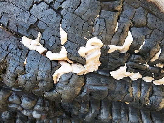 And as an artist, I was drawn to the colors and patterns evoked by fire from the canvas of burned trees. I became a connoisseur of charred bark and the patterns exposed on the sapwood of a fallen tree trunk as the dead bark falls off or is torn off by bears looking for insect larvae. I marveled at the fungi that colonized dead tree trunks and fallen logs, and the beautiful “pleasing fungus beetles” that ate the fungi. Together, the fungi and insects were processing nutrients from the once-living plant matter and releasing them for the rest of the surviving community.