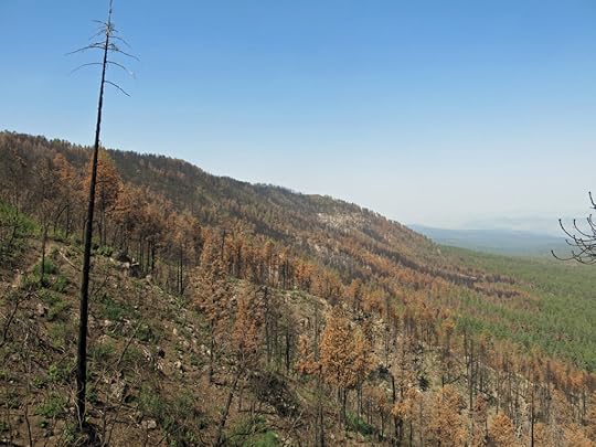 As I climbed toward the shoulders of the ridge, I found logs that had been recently cut, and clear tread on the trail. I realized that during “mopup,” firefighters had used this trail to monitor the fire, hence they’d had to keep the trail open. I hadn’t thought of that, and it made me hopeful about the rest of the hike.