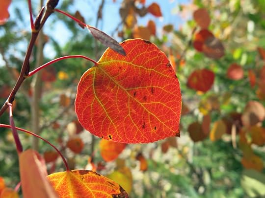 The little grove of aspens in the saddle was blazing red and gold, but they were all small trees because they were part of early succession after the massive 2012 wildfire in these mountains. From up there, I could see bands of color striating distant peaks – all of them small trees in dense fire-recovery stands. Nothing like the towering, mature groves we used to admire in the High Sierra of California. In fact, since I moved to New Mexico and began hiking wildfire scars, I’ve come to see aspens not as beautiful members of mature forests, but as scrubby thickets colonizing burn areas. On these slopes, they alternated with the deeper red of maples as well as rust-colored oaks and ferns. The brown of the ferns actually covers the broadest expanse of these fire scars, and is attractive in its own right.