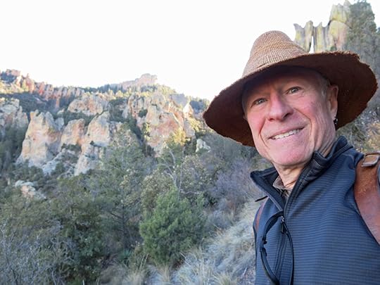 From the saddle, the trail got much steeper, rockier, and more precarious. Midway to the spire there was a fifty-foot rock face I crossed, using a narrow crack, and halfway across, clinging to the bare rock, I encountered a baby rattlesnake hiding in a fissure. It got really upset and I had to find a way around it.