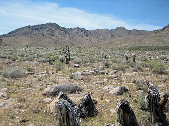 After breakfast I decided to hike out into the central basin, across the rolling ground of the bajada, toward a giant boulder pile on the other side where I knew there was a good resting place with shade. I didn’t think I could make it with my injured foot, but at least it was something to do with my time. That’s the problem out here for us civilized people. There’s nothing to do but hike, especially if you’re alone with no one to talk to.