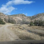 I was wrong. I ended up walking almost a half mile down into a canyon in near-freezing temperatures, wearing only a light sweater, while still trying to get over my lingering cold. The road was so rocky it was questionable if I could have driven it, and I never did reach the trailhead. The walk out and back, less than a mile, hurt my knee so bad that I would have trouble standing, sitting, or using stairs for days. But at least I got a feel for the country – as wild as I’ve ever seen.