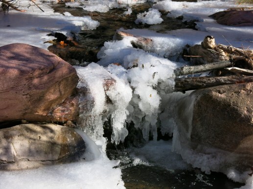 And despite the warm weather, in one shady stretch the creek was frozen solid!