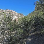 I finally sensed the end was near, and backed off into a small clearing to scan the slopes ahead. They looked far too rugged to climb, and that deep wash, lined with big prickly pears, separated me from them anyway.