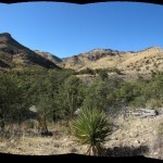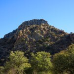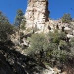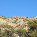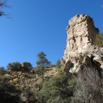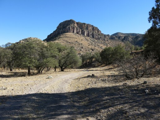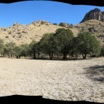 The ranch house lay just out of sight at the north end of the basin, but the road I wanted turned off south. The basin is dotted with huge spreading trees which I was surprised to identify as Emory oaks – we have much smaller ones around home – and in less than a quarter mile the road turned bad and I pulled off to park in a clearing near several of these majestic trees. At the edge of that lovely basin, in this landscape dominated by stone in endless organic forms, I was already in heaven and I hadn’t even started hiking.