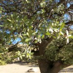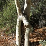 In this basin dominated by oaks, I came upon the occasional juniper and was surprised to encounter small manzanitas. Back home, manzanita only seems to grow above 8,000 feet, but here – and in another range to the south – at similar latitudes, I’ve found it between 5,000 and 6,000 feet. Why the difference?
