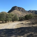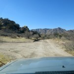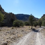 The road crossed the wash again, near groves of big oaks that featured really pretty campsites. So far, the road had been easily passable by high-clearance 4wd vehicles, and I was thinking this would be a great place to camp – just outside of bear habitat, but with access to the higher mountains.