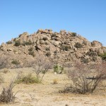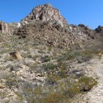 The mine was on a slope opposite the one I’d hoped to climb, across a deep, narrow gully choked with boulders and cacti. As I picked my way from the mine toward the gully, I could see that this slope was much rockier, and got rockier still higher up. And the rock looked exactly like the rare metamorphic rock in the canyon on my Mojave land, which I’d never seen anywhere else.