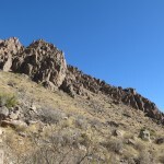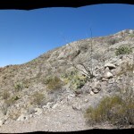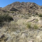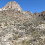 In the meantime I was scanning that slope across the wash that I’d hoped to climb. No dice – the lower part was too steep, and the wash was blocked by spreading prickly pears.