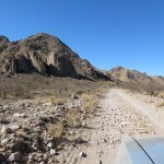 Back on the main road, I tested the Sidekick lift on deeply eroded and rocky stretches, and never bottomed out. It was great not to be stressing over the right line to take all the time. The road I needed, up the canyon to the foot of the peak, hadn’t been driven recently, and turned out to be as bad as the abandoned mine roads in the Mojave. As in the Mojave, the alluvial fan was lined with creosote bush, and there was even a deep dry wash next to the road just like in the desert. The peak loomed higher and more forbidding as the walls of the canyon closed in, but the road kept climbing and climbing, much farther than I’d expected.
