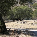 But in less than a half mile the road disappeared under a debris flow of white rocks from the historic floods. I couldn’t find where the biker had gone, but I continued working my way upstream across the rocks, until I got really frustrated by the oaks in the canyon bottom blocking my view of the landscape. So I carefully climbed the east slope to a high bench with an expansive view. And the first thing I saw was another herd of cattle, facing me from the corresponding bench across a deep ravine. This was clearly their habitat, not mine.