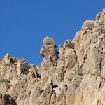 On the way to one of my favorite hiking areas along the Arizona border, I pass a small mountain range with low granite peaks, cliffs, and boulders that reminds me of my mountains in the Mojave. The peak of the range has always intrigued me, because from the highway it looks unclimbable, a spire of solid rock. And while researching the area online, I was surprised and excited to learn there’s a population of desert bighorn sheep there.