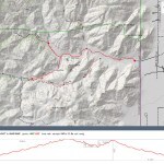 And I realized I would now have to hurry back down the trail, to reach the cafe before closing. When I plotted my route at home later, I found I’d only gone 5.6 miles total, but gained an accumulated 2,141 vertical feet – far more than was wise with this knee injury.