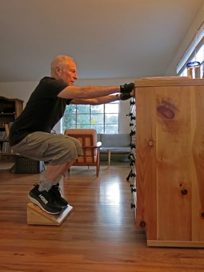 Throughout the past year, as I kept researching my apparent knee condition online, I found the same advice over and over: do eccentric squats on a slant board. In an eccentric squat, you first squat slowly with most of your weight on the injured knee, then shift weight to the opposite knee to rise slowly back to a standing position.