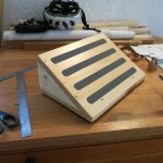 Even for a small piece like this, sanding is time consuming. I’d originally figured it would only take a few hours to throw something together that would be usable. But then I realized I’d need some kind of anti-slip covering, which meant the wood would have to be finished, which meant it would have to be sanded. Hence the relatively high prices for commercial products.