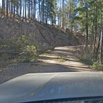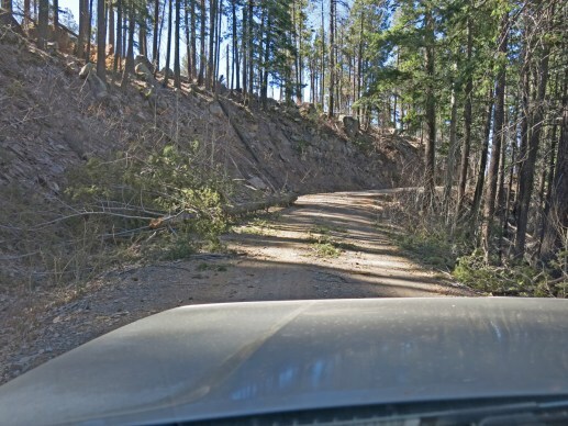 The forest road to the summit did turn out to be open, but as usual, six or eight trees had recently fallen across it, then had been pushed or dragged to the side by other travelers. Since it’s regularly maintained, the road’s never been a challenge for the Sidekick, but the upgrades give me confidence that was always lacking before.
