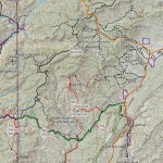 The map shows the hiking trail following an abandoned road that dead-ends just east of the summit, and from there, following a long ridge south toward a remote trail junction I’d bushwhacked to a few years ago. None of the trails in this area are maintained, and this trail is shown as a dotted line, meaning it may no longer even exist. I figured if it wasn’t passable I’d drive back south to one of the other options.