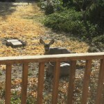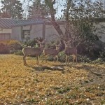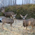 When I got home just after sunset, one doe and her fawn were still in my backyard, so I chased them out, and they crossed the wide street to my neighbor’s small front yard, surrounded by a hedge. These seem to be strictly urban deer now – a whole new breed, comfortable around people, thriving on pavement, surrounded by city traffic, more than a mile from undeveloped habitat. Dystopia is no longer a fantasy of the future.