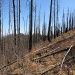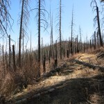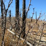 What I found was one of the worst burn scars I’ve ever seen. I hadn’t noticed it from the forest road, or the highway below, because firefighters defended the corridors, and lower peaks block a view of this summit ridge. The fire occurred in 2018 and was limited to the summit ridges and plateau of this tiny range, but it burned as intensely as any I’d found in our region.