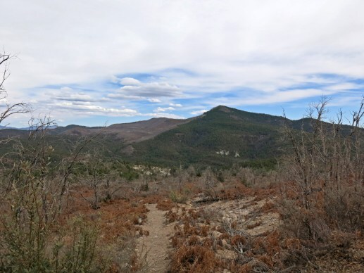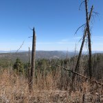 Turning back and emerging from the forest, I could see south across the canyon toward the apocalyptic moonscape left by a 2014 fire, and west to the Black Range, devastated by high-intensity mega-wildfires in 2013 and 2022. I’ve hiked all these burn scars extensively.