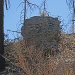 The map showed this to be the start of a trail up a small peak, but all I could find were meandering cattle trails. There was no cabin foundation around the fireplace, but the chimney showed a fringe of rusted flashing from a metal roof. Hard to say what happened here.